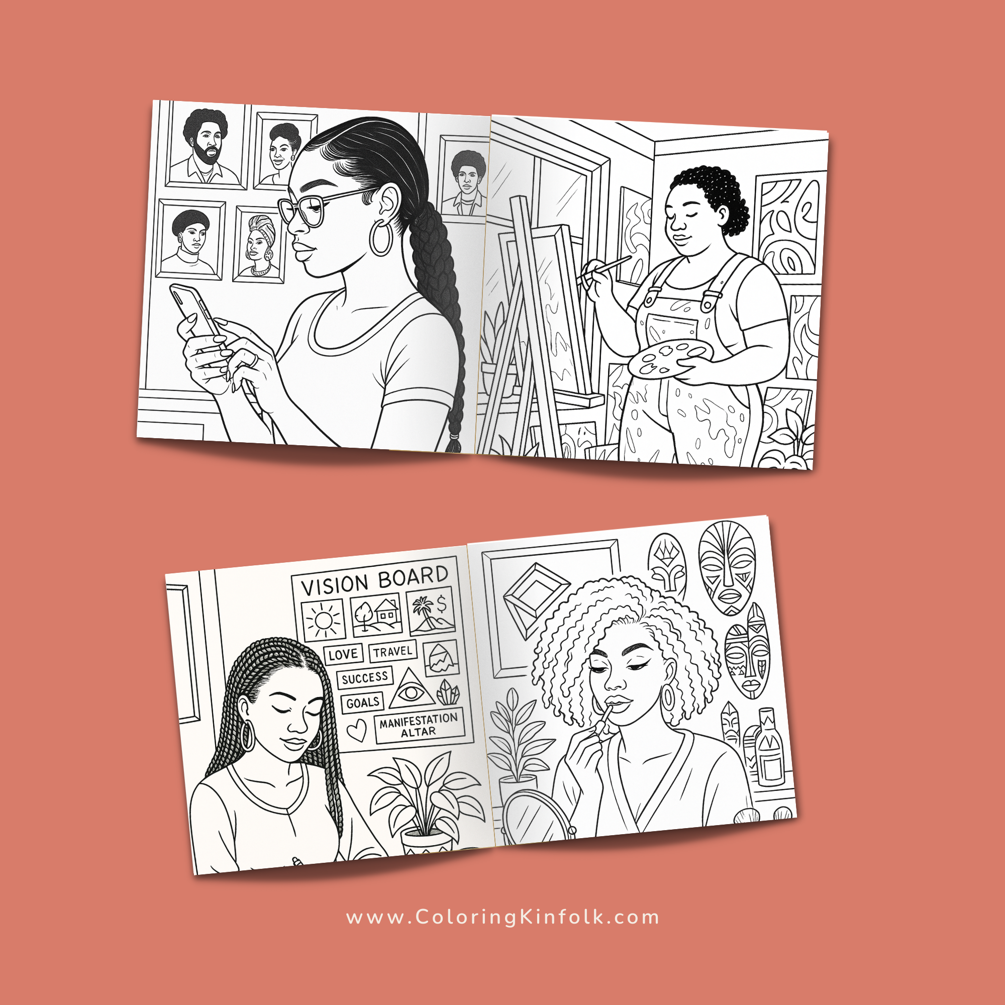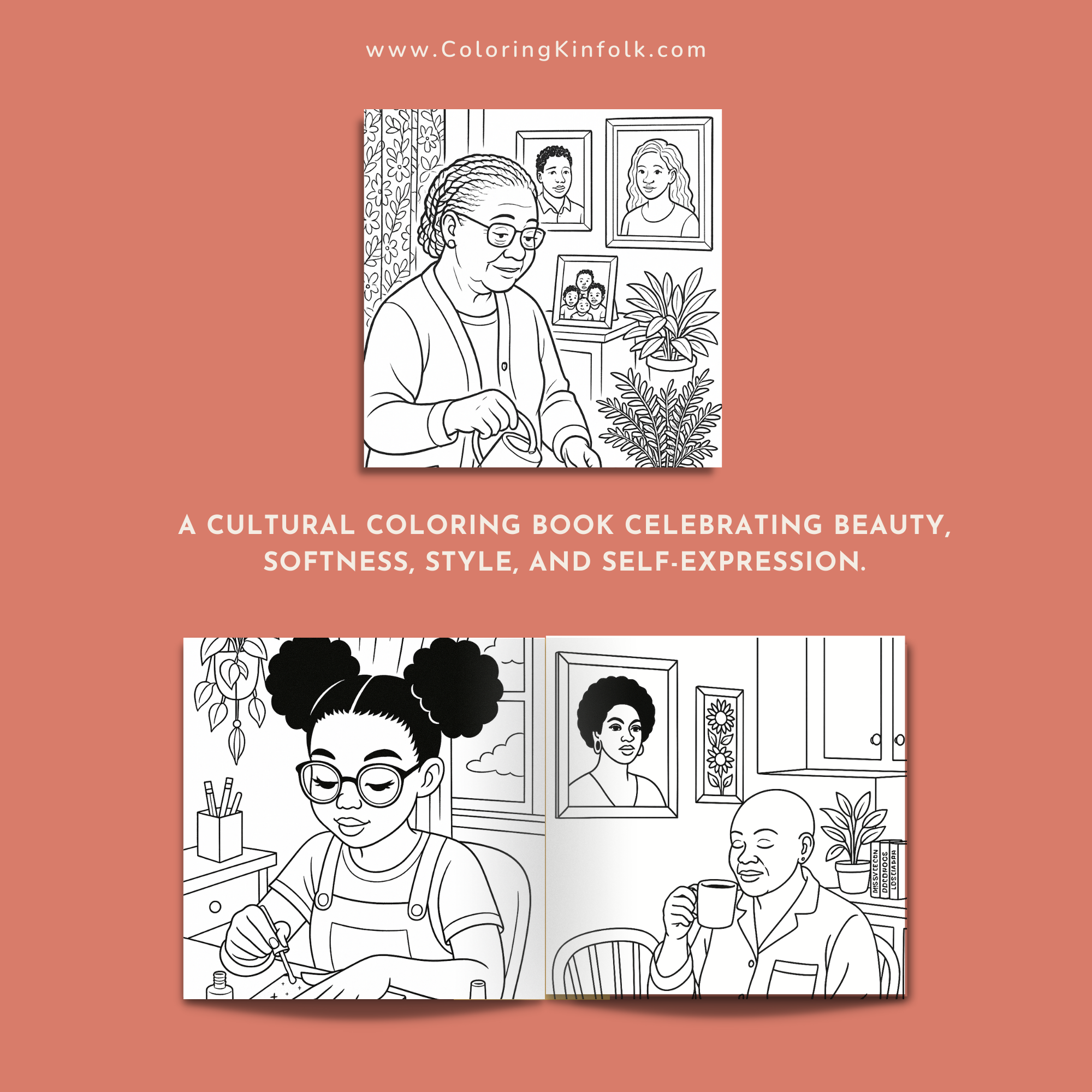 Coloring Kinfolk was built on this principle: Black American domestic life deserves authentic representation. From Sunday Dinners to HBCU experiences to everyday Black joy, every page reflects actual lived experience.